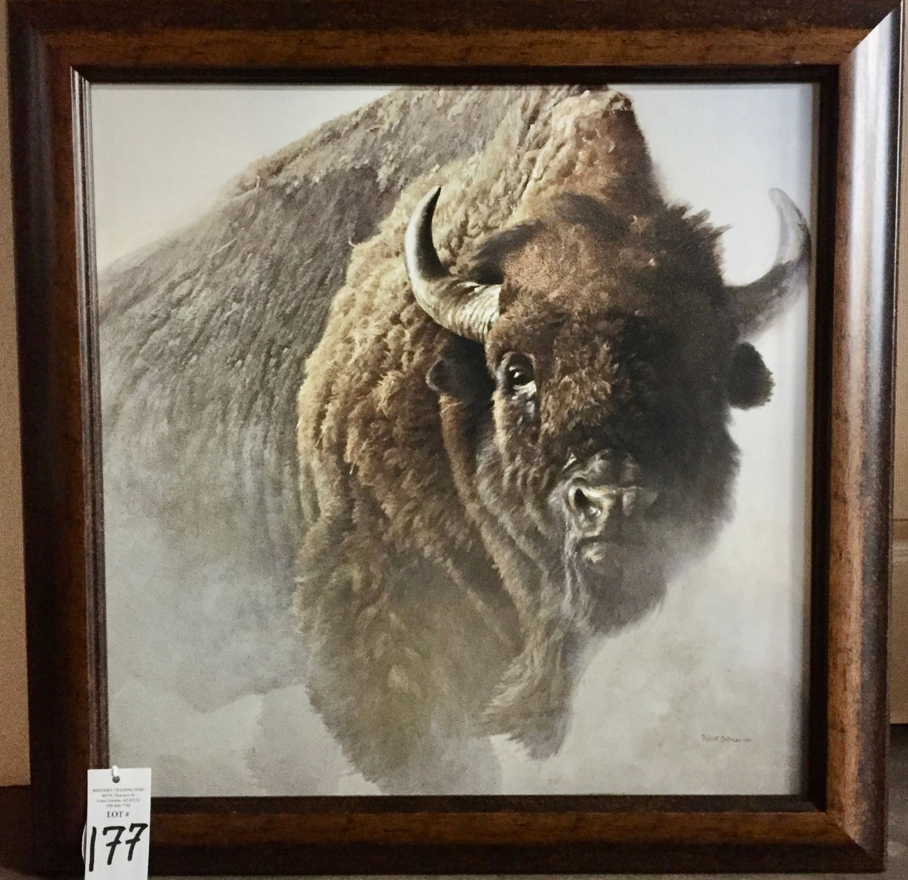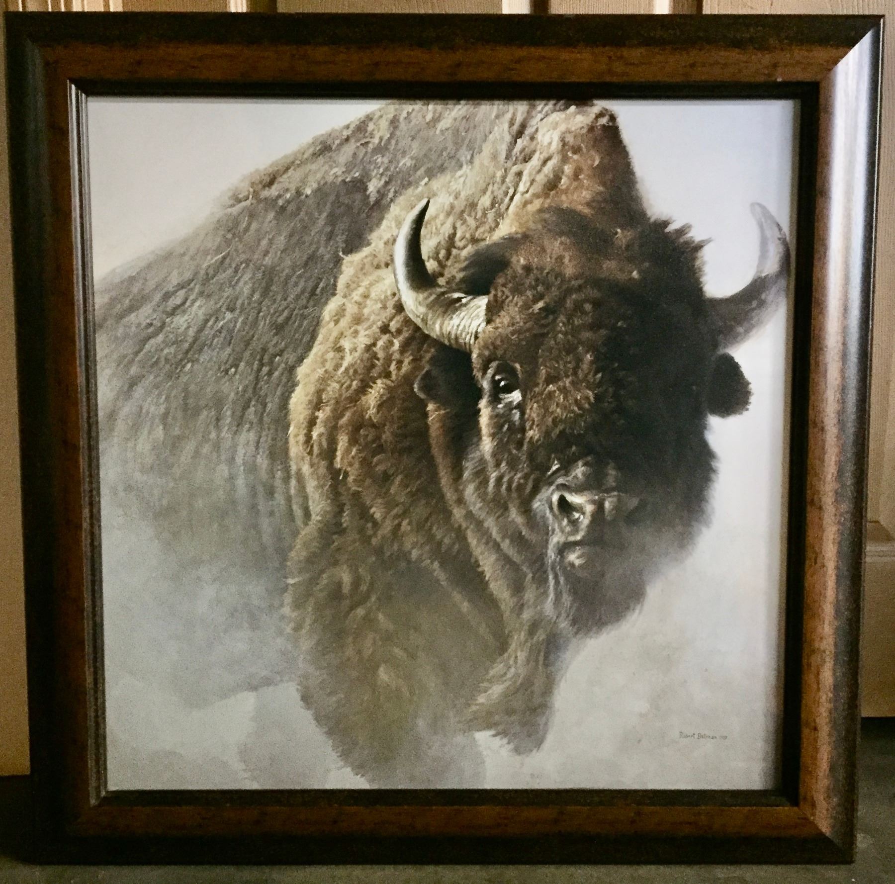 Description: Presented for sale in this lot is a gorgeous Buffalo canvas print created by the known artist, Robert Bateman.                                                                                                            Maker: Robert Bateman.                                                                                                                  Approx. Age: 1997.                                                                                                            Size: 29” x 29”.                                                                                                                                                                                                                                 Condition: Good for its age, normal wear expected.                                                                                                                Please look closely at the pictures - they are an important part of our description.                                Shipping: There will be a $10 handling / packaging fee for shipping this lot. The actual cost of postage will be added on top of that.
