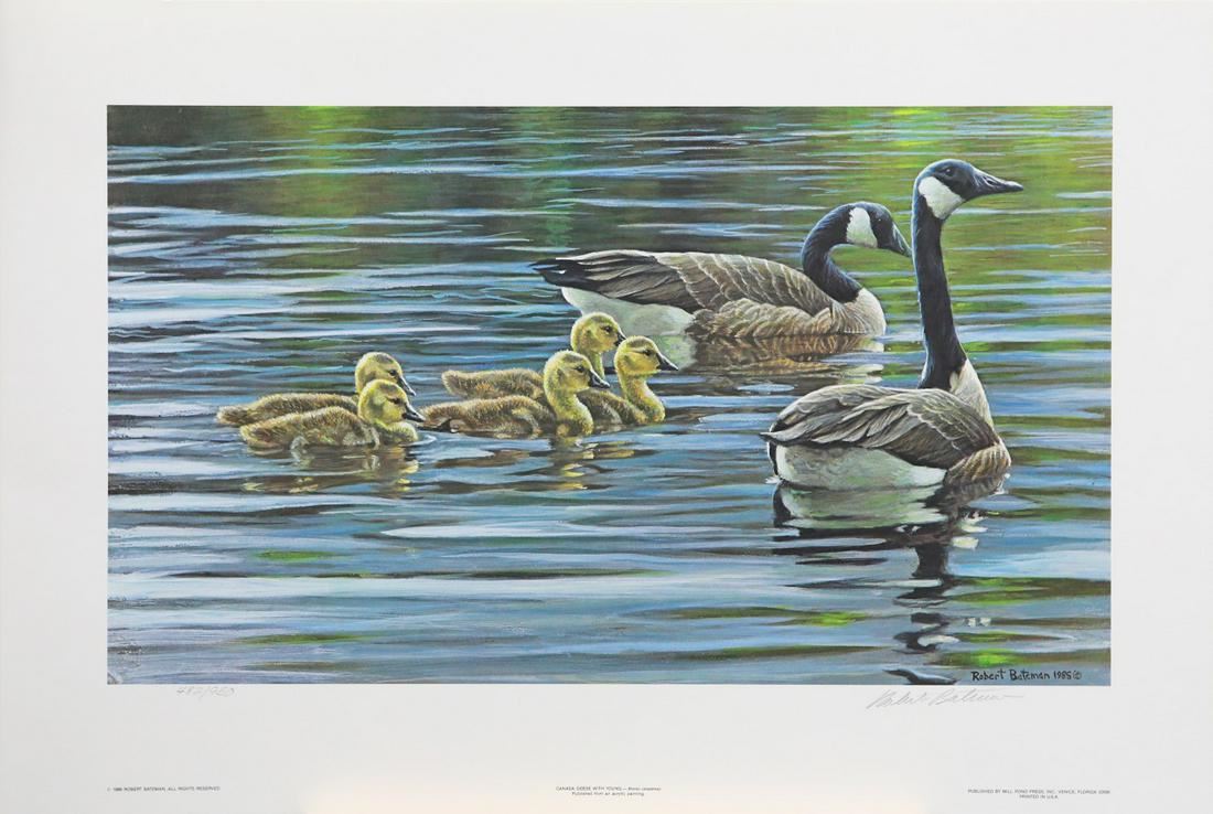 Robert Bateman's "Canada Geese With Young" limited edition print signed and numbered 482/950. Image- 11" x 18 1/2"