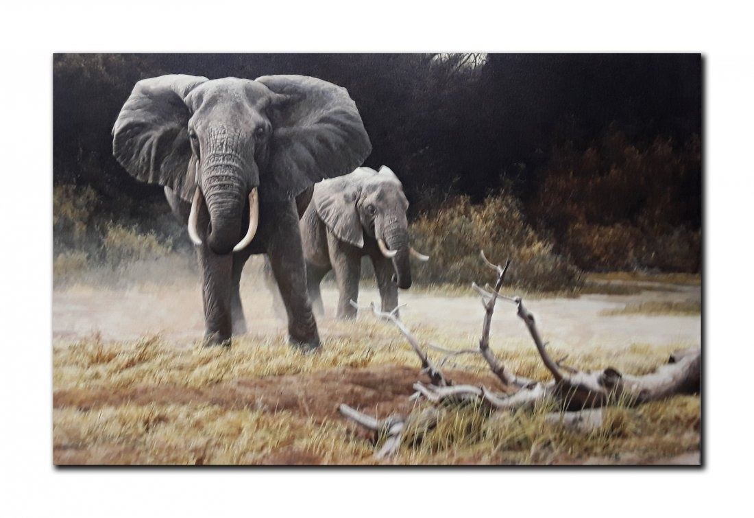 Robert Bateman's "Elephant, Cow And Calf" limited edition canvas signed and numbered 110/180. This canvas is in mint condition and has never been framed.
