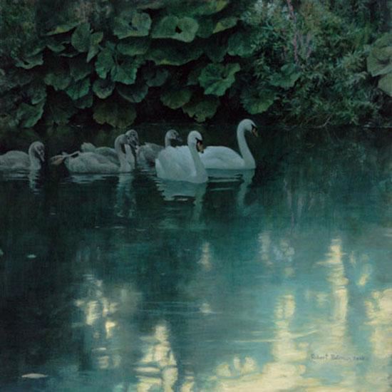 Robert Bateman's "Great Dunford Mute Swans" limited edition canvas signed and numbered of an edition of 180. This canvas is in mint condition and has never been framed. 19" x 19".