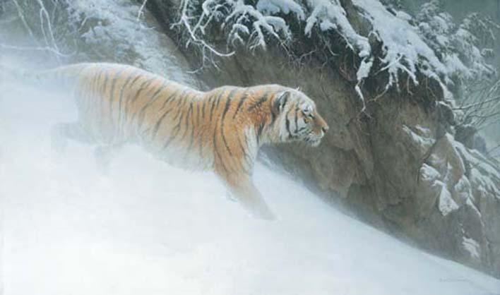 Robert Bateman's "Momentum - Siberian Tiger" limited edition canvas signed and numbered of an edition of 180. This canvas is in mint condition and has never been framed. 24" x 40".