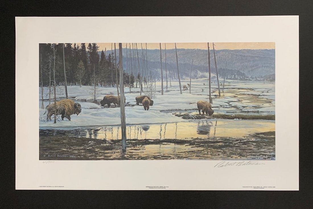 Robert Bateman's "Morning of the Flats- Bison" limited edition print signed and numbered 60/950. This print is in mint condition and has never been framed.