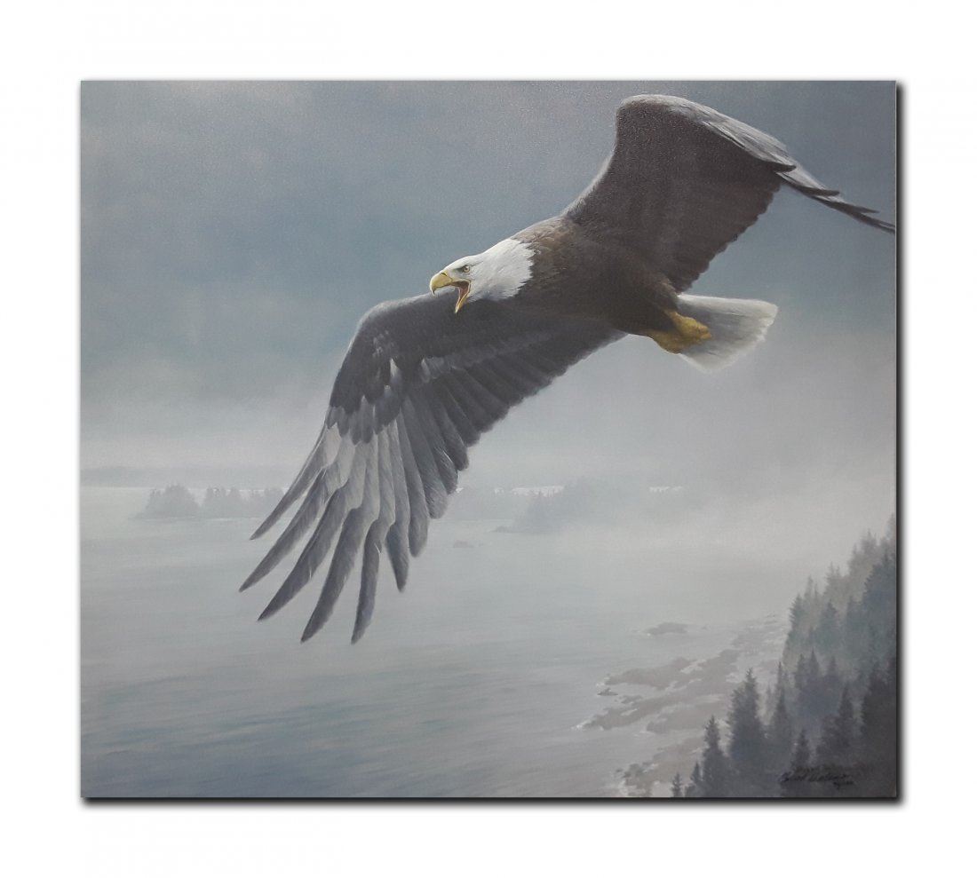 Robert Bateman's "On The Wing- Bald Eagle" limited edition canvas signed and numbered 45/180. This canvas is in mint condition and has never been framed.