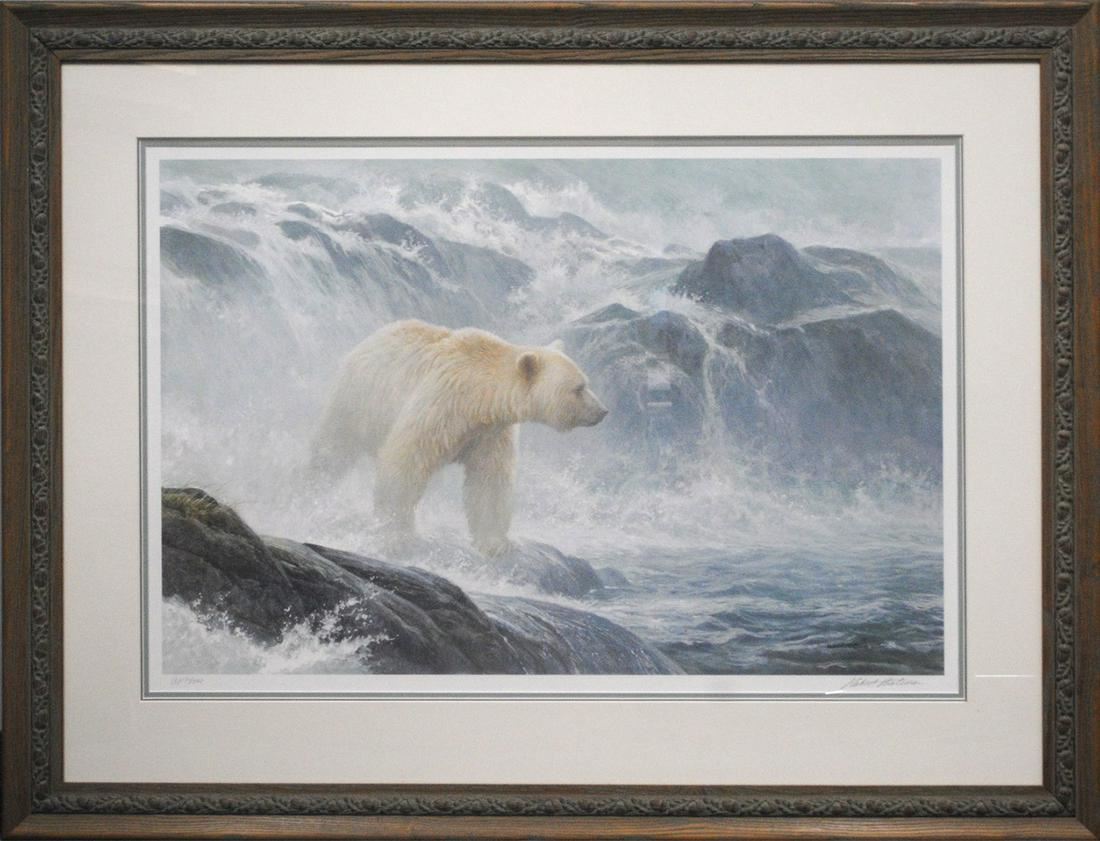 Robert Bateman's "Salmon Watch- Spirit Bear" limited edition print, signed and numbered.
