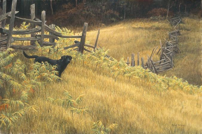 Robert Bateman's "Smallwood" limited edition canvas signed and numbered 52/225. This canvas is in mint condition and has never been framed. "Those who have had a dog who hikes with you will know the special relationship I had with my dog, Smallwood. We had many wonderful times together, exploring the world of nature. Sometimes we showed things to each other, but mostly we ambled together - on separate wave lengths - sharing enthusiasm, exercise and the joy of being alive." - Robert Bateman. 24" x 36".