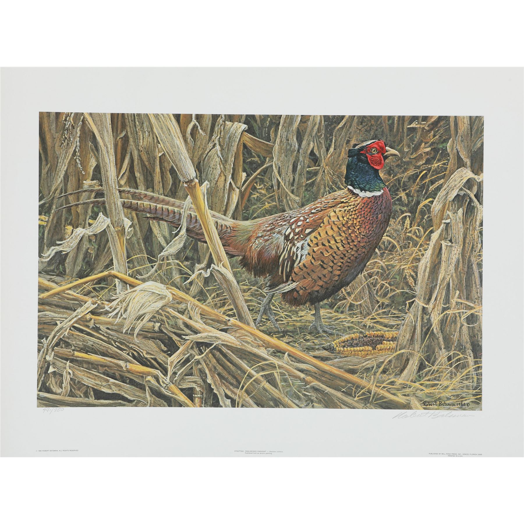Robert Bateman's "Strutting - Ring-Necked Pheasant" limited edition print, signed and numbered 491/950. This print is in mint condition, in its original folder. Image- 15 1/3" x 23 1/4". Paper- 20 3/4" x 27 3/4".