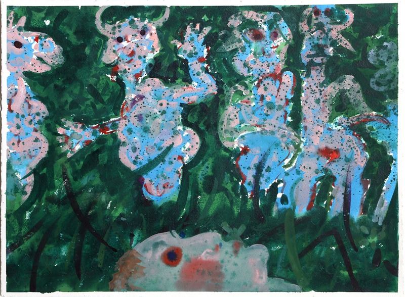 Robert Beauchamp, Figures in the Grass, Gouache Painting