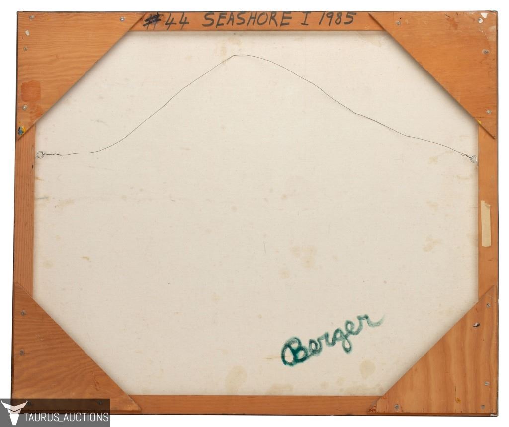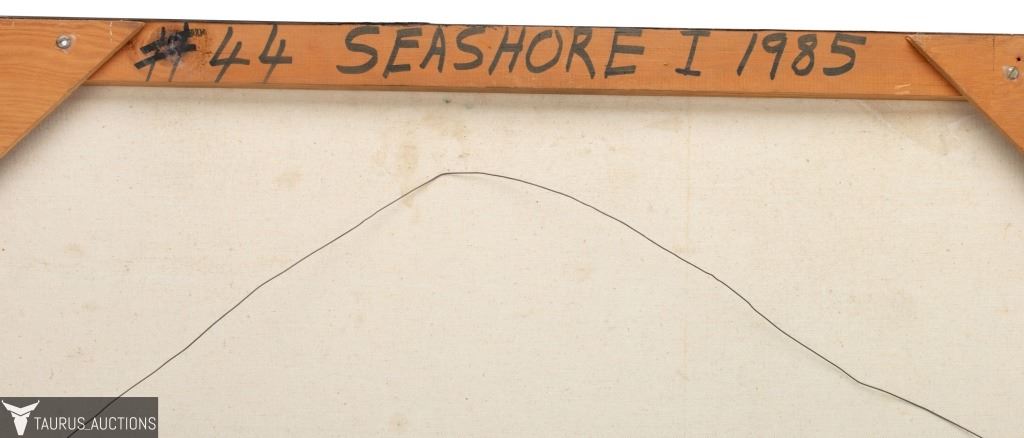 Item/Description: Original, modern abstract seascape painting by New York artist Robert Berger. Signed en verso: Berger. Titled and dated on stretcher bar: #44 Seashore I 1985.