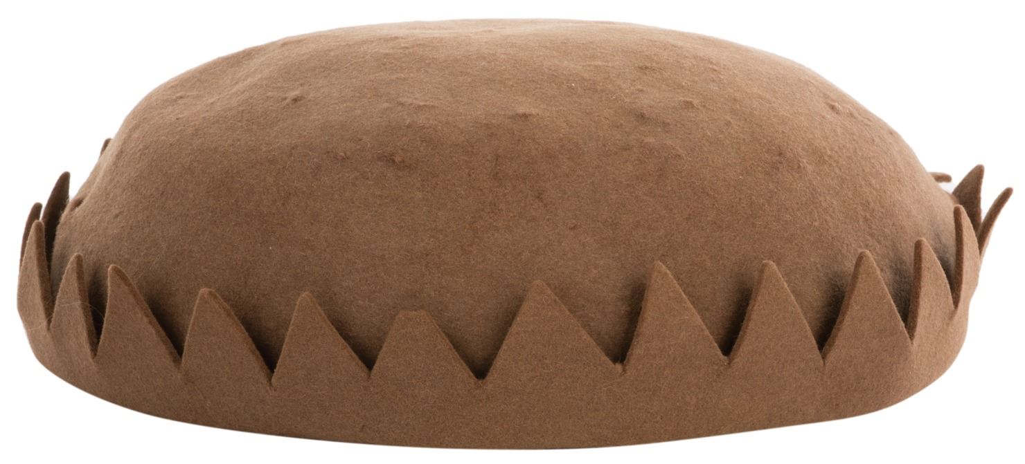 1. Robert Blake "Mickey" Whoopee cap from Our Gang. (Hal Roach, ca. 1920s) Vintage original brown felt child's beanie cap with round dome and peaked-triangle upturned brim. Retaining faint handwritten, "MGM" in interior crown. Worn by a juvenile Robert Blake as "Mickey Gubitosi" in the beloved series Our Gang. Exhibiting age, production wear, some small breaches and holes in areas, and general rubbing. In vintage good to very good condition. Originally sold at the 1970 MGM studio auction. $600 - $800