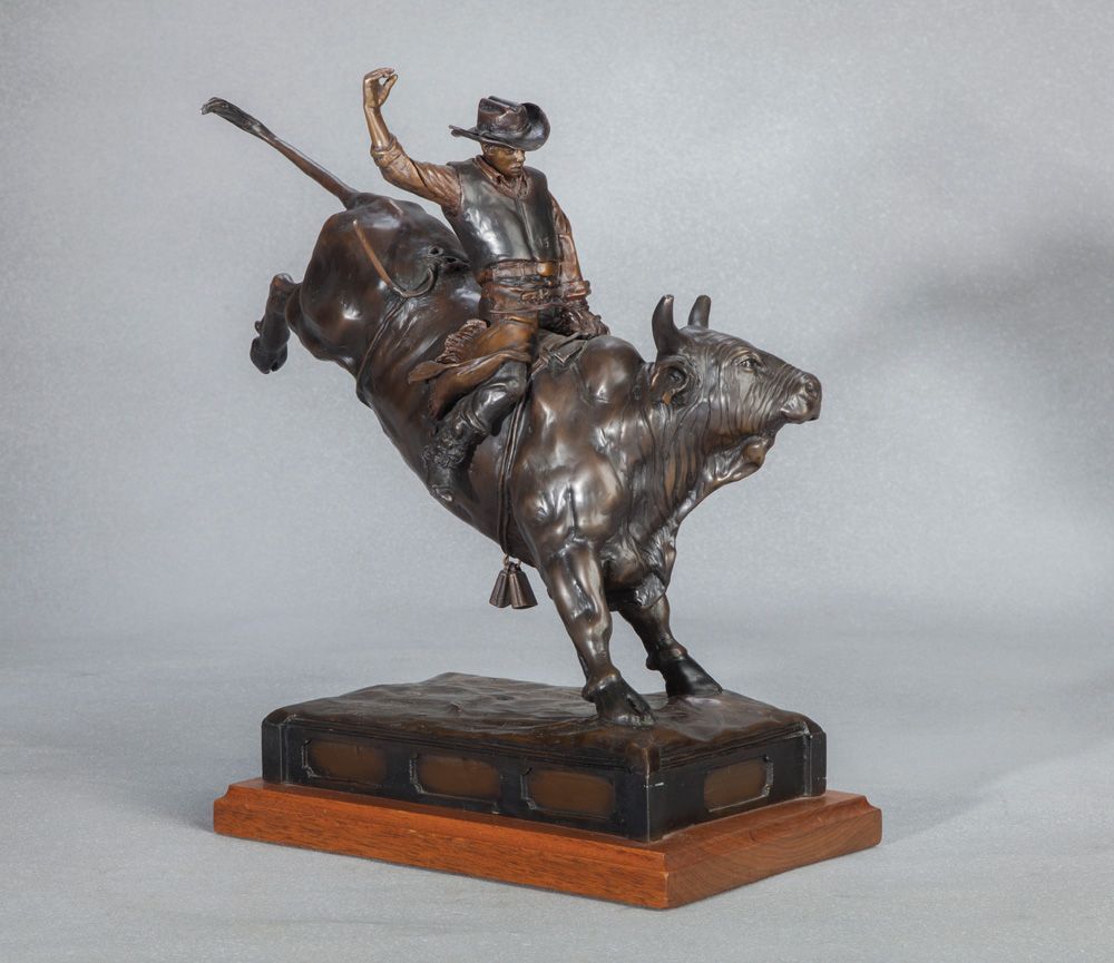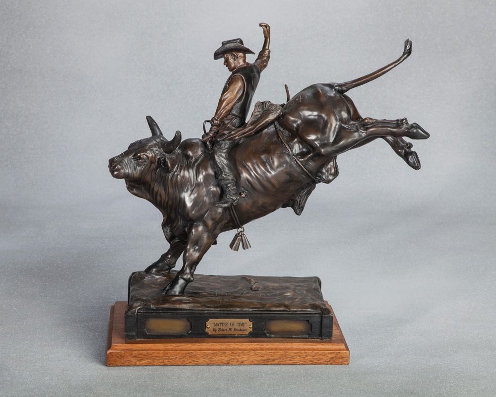 Robert Broshears (b. 1934). Matter of Time. 17" x 17" x 7" (plus 1" wood base). Bronze. Signed in bronze and dated 1999, 20/35