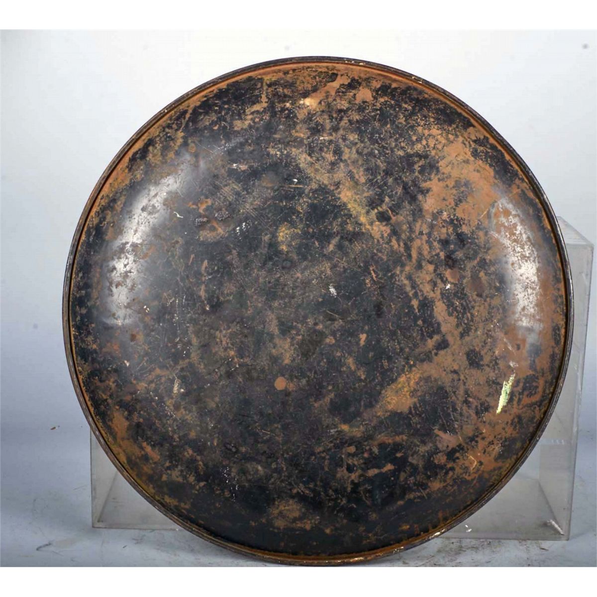 Featuring portrait of a gentleman w/ box of cigars, inkwell, quill pen & paper on plaid background, Beach Art Display, Coshocton, Ohio Condition Fair Size 24" diameter