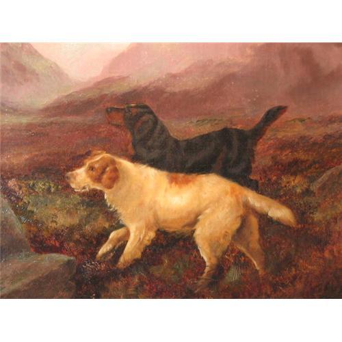 A skilled artists depicts a wonderful landscape and two fabulously executed dogs.</em></td>
