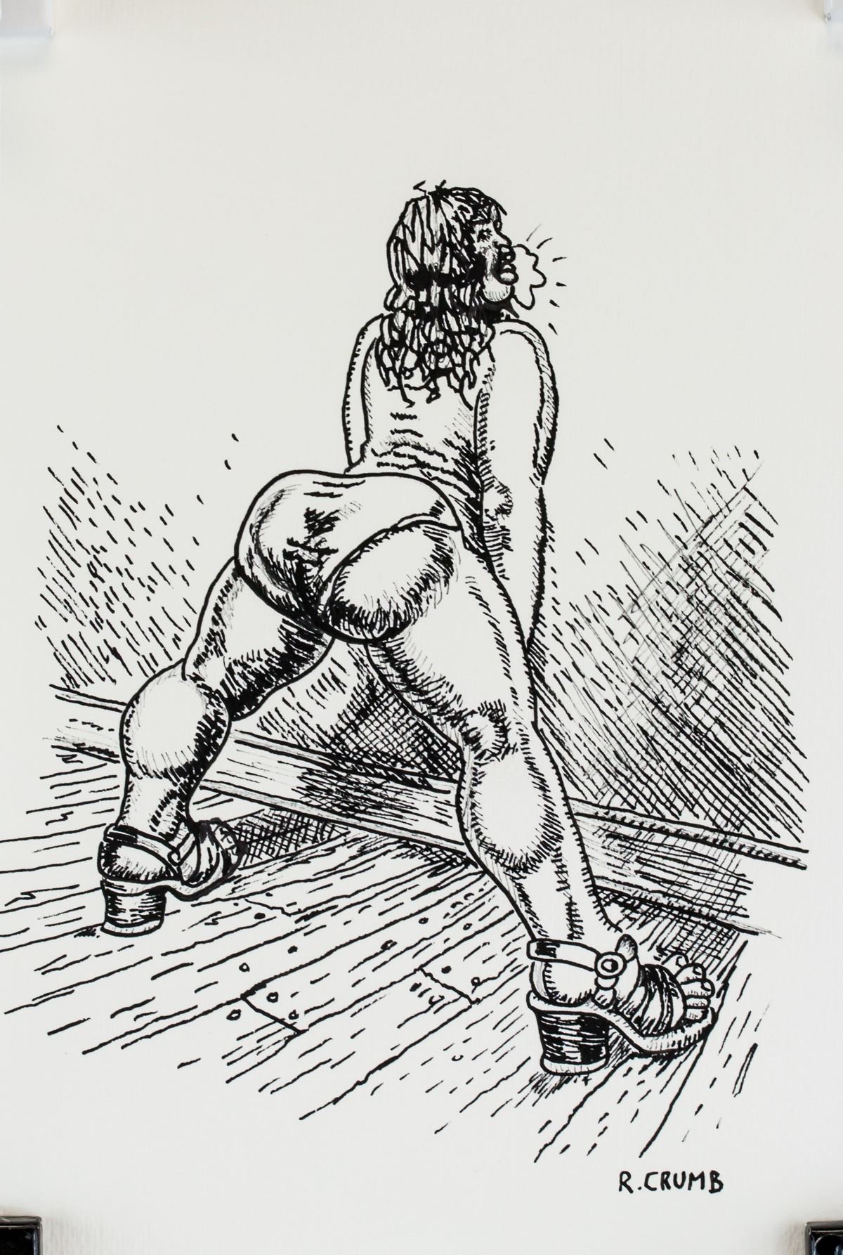Ink on paper. Featuring a portrait. Signed R. CRUMB on the lower right corner. Attributed to Robert Crumb (born 1943, American). 23 x 16 cm (9.1 x 6.3 inches). PROVENANCE: Southern Ontario estate