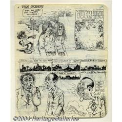 Robert Crumb - Original Sketchbook Page, "Fun with Buns" (1970s). R. Crumb gets to the point with this page out of one of his legendary sketchbooks, showing us just how much fun there is to be had with a nice firm female posterior. Several other crazed cartoons are featured on this tightly rendered page, drawn freehand in ink (but using quite a bit of white-out). Some of these sketches were published in 1973's Artistic Comics. The page measures 7" x 8.5", and is in excellent condition. Important notice: Heritage usually auctions material at the rate of 200-250 lots per hour. On some occasions eBay Live bid software or the Internet may not be able to keep up with the pace of the auction. We recommend placing a realistic absentee bid now as insurance to avoid disappointment. Occasionally the auctioneer may eliminate or reject an eBay Live bid, and the auctioneer may also reopen a lot after the close of the eBay live bidding (usually because we missed an audience bid), and may reject your bid even if it shows you as the winning bidder. By bidding via eBay Live, you agree that Heritage may award the lot to another bidder at its sole discretion under the circumstances described above or any other reasonable circumstances. Since eBay bids are not shown to us until we open the lot on the floor, we treat those bids just like floor bids. In most cases the floor responds before the eBay bid is presented to us, due to Internet lag time, so for consistency we have made it a policy that floor bids are always considered first over tie eBay live bids. Also please note that all Heritage lots purchased through eBay Live carry a 20% Buyer's Premium. Please make sure you read the Terms and Conditions before you bid.