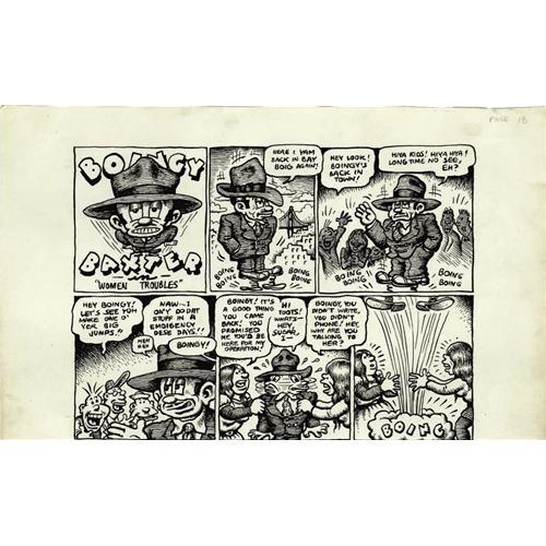 <B>Robert Crumb - XYZ Comics Complete Half-page Story "Boingy Baxter in Woman Troubles" (Kitchen Sink, 1972).</B></I> Hey look -- Boingy's back in town! That dapper little guy from <B>Motor City Comics</B></I> with the springy instep pops in long enough to wave to the crowd in this half-pager, which originally appeared in the June, 1972 Crumb solo book, <B>XYZ Comics</B></I>. Six panels of Crumb line art, drawn with his trusty mechanical pen, with an image area of 8" x 6", on a 11" x 6.75" sheet of bristol board; in Excellent condition. Prime stuff from the King of the Undergrounds!<BR><BR><b>Shipping:</b> Small Flat (<a target="_blank" href="http://www.heritageauctions.com/common/shipping.php">view shipping information</a>)