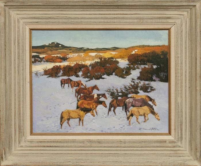 Robert Daughters (b. 1929). Horses Grazing. 14" x 18" oil on canvas. signed lower right. Condition Report: Black lights clean.