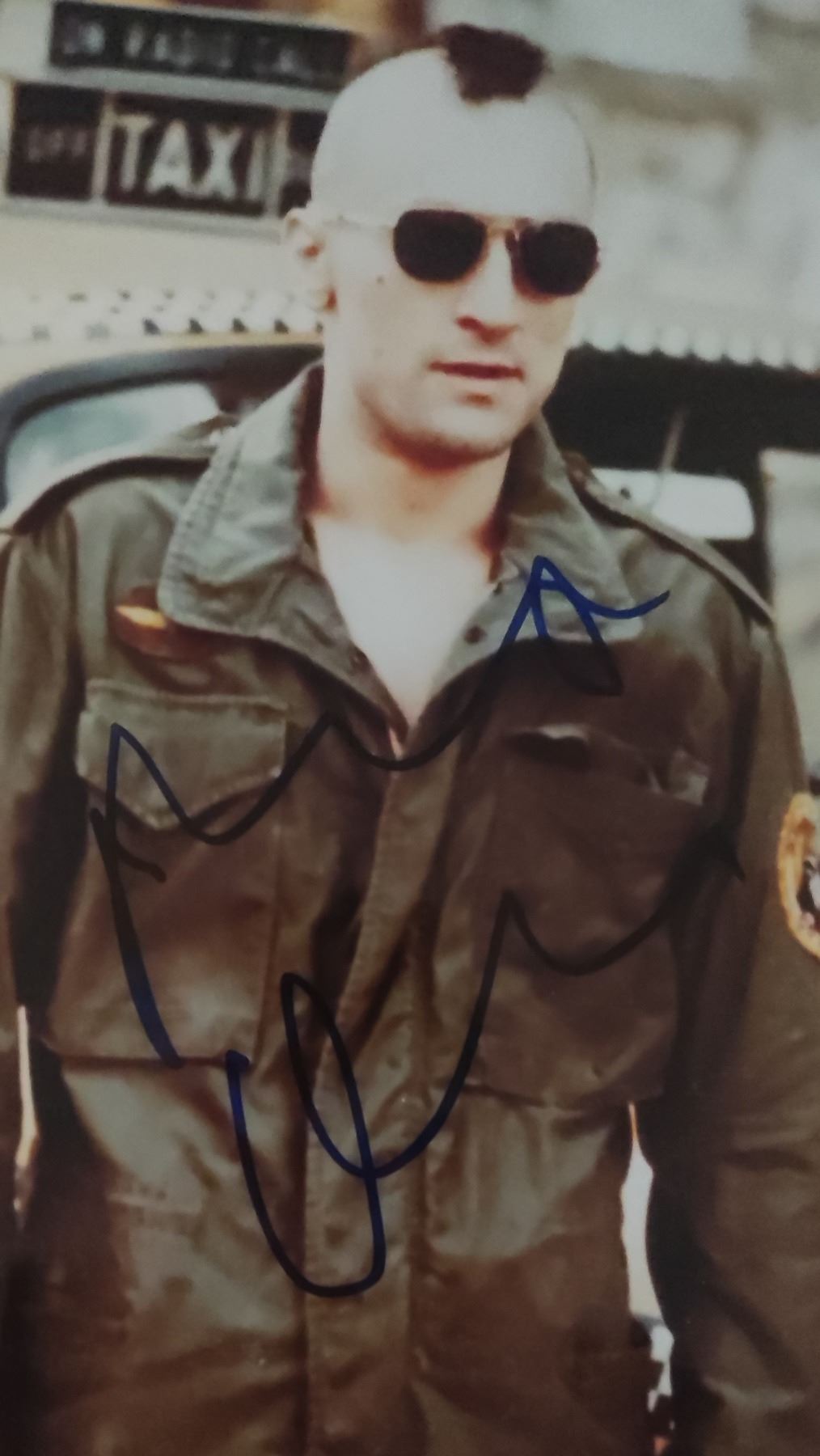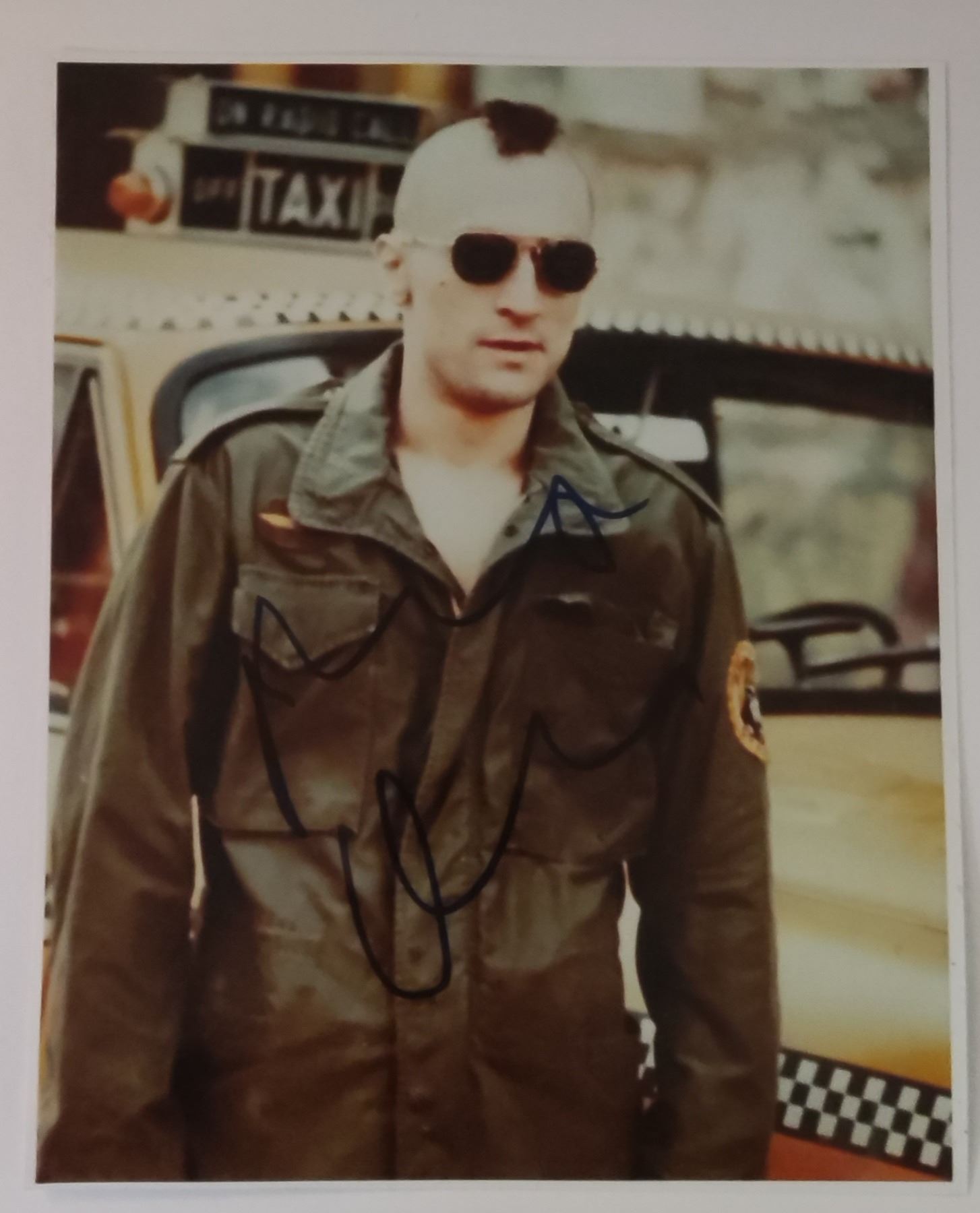 A modern signed photograph of De Niro in the classic film 'Taxi driver'