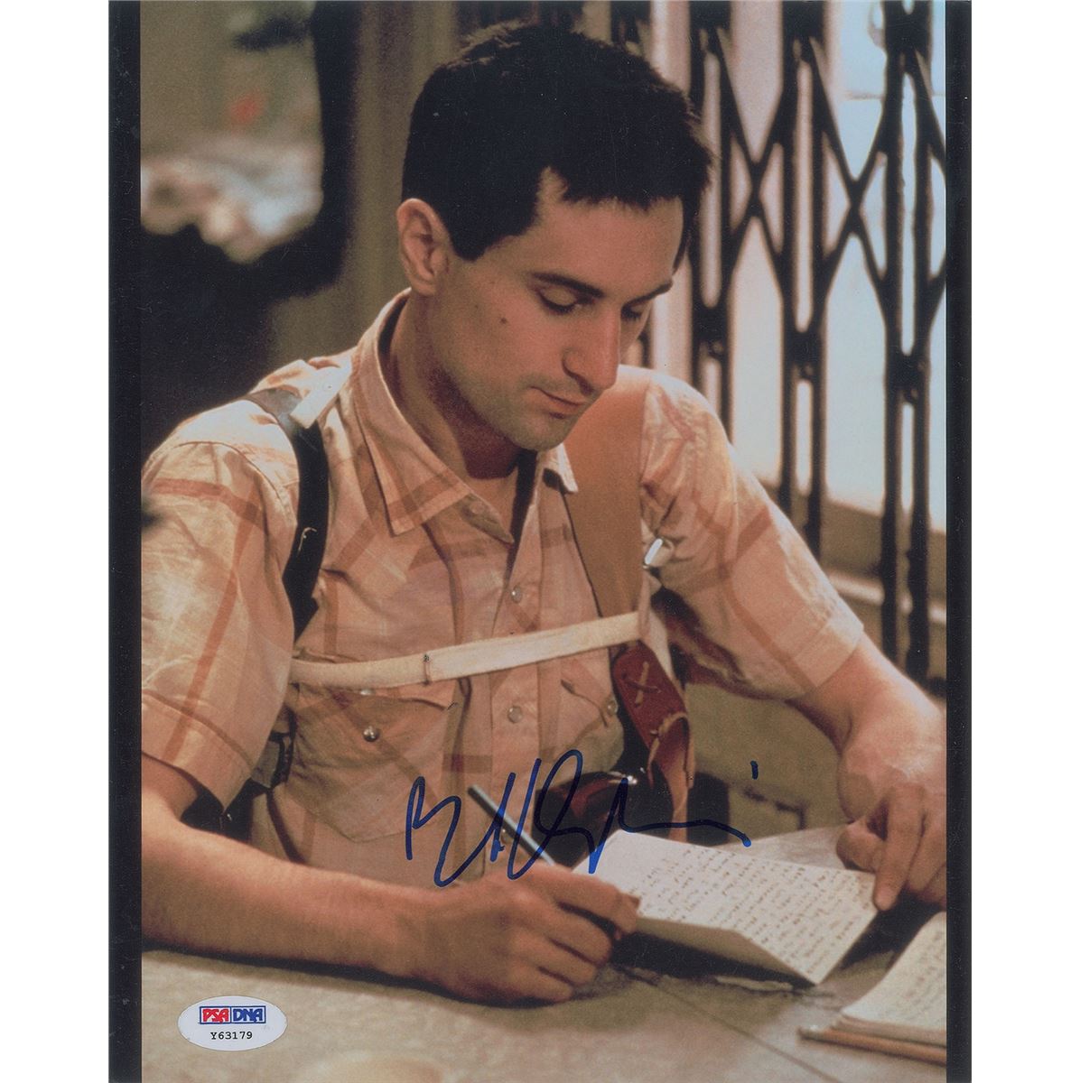 Color satin-finish 8 x 10 photo of DeNiro as Travis Bickle in the acclaimed 1976 film Taxi Driver, signed in blue felt tip. In fine condition, with a PSA/DNA label affixed to the lower left. Accompanied by a certificate of authenticity from PSA/DNA.