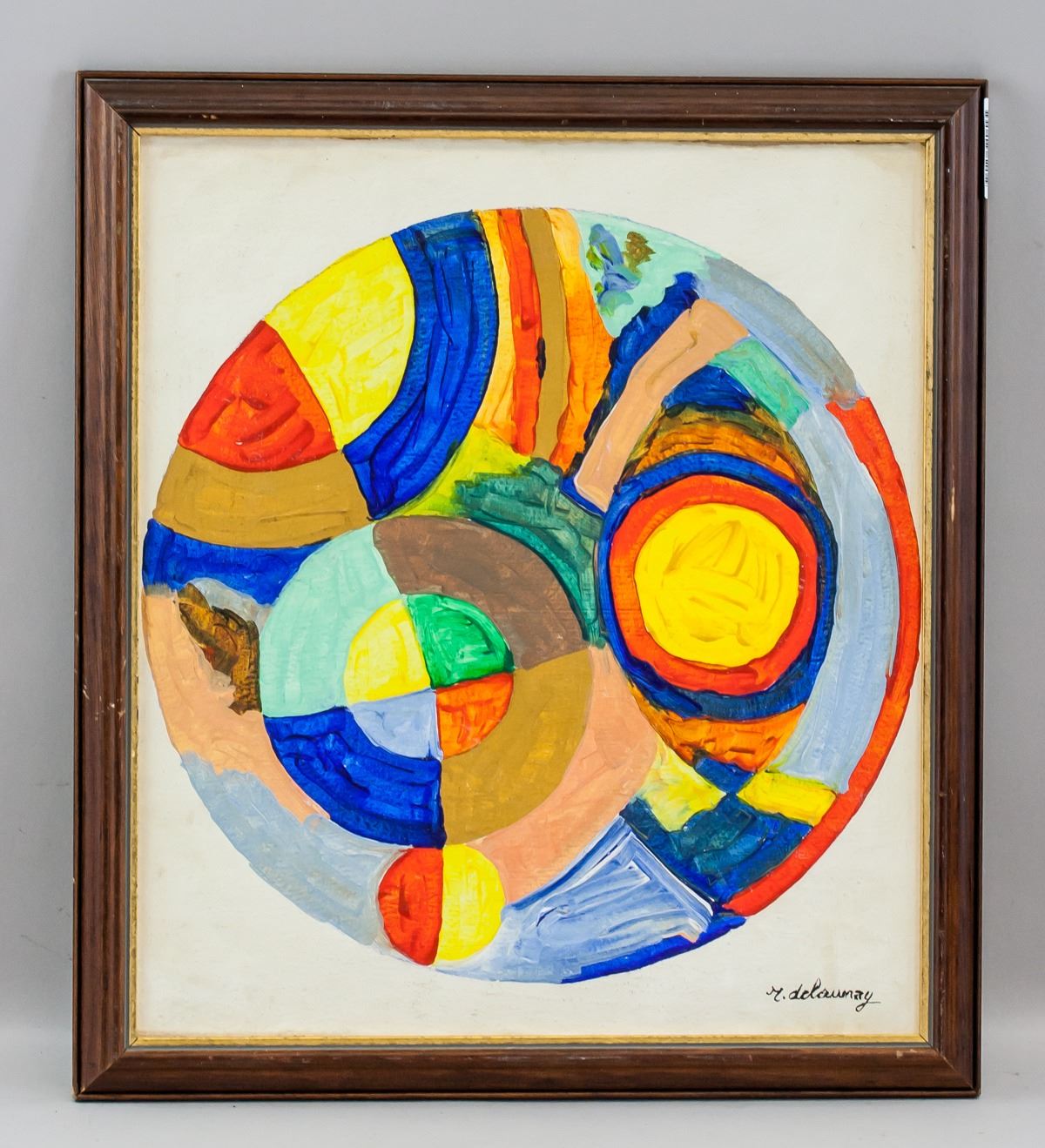 Oil on canvas, framed. Featuring an abstract orphist composition. Signed r. delaunay on the lower right corner. Attributed to Robert Delaunay (1885-1941, French). 39 x 34.5 cm (15.3 x 13.6 inches). Framed size: 45 x 40 cm (17.7 x 15.7 inches). PROVENANCE: Southern Ontario estate
