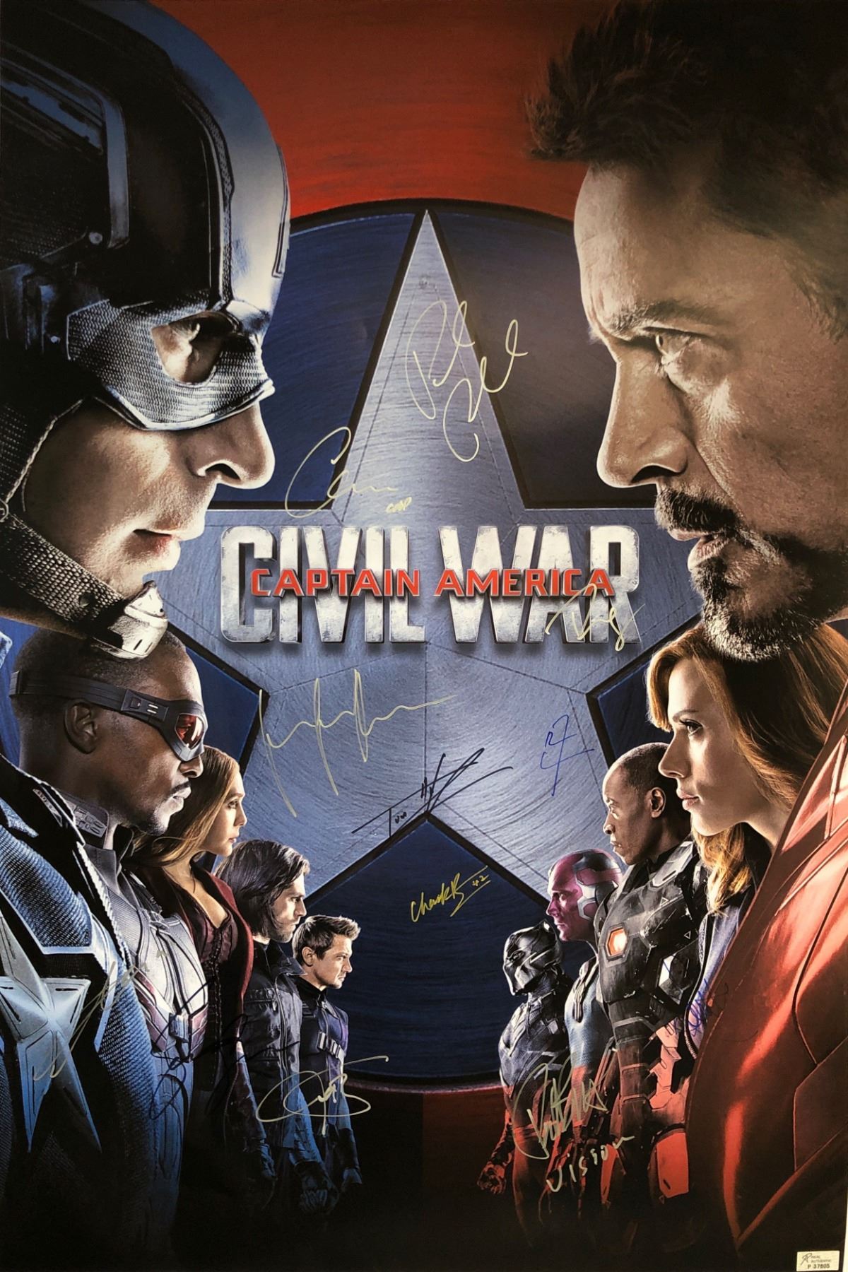 Autograph Includes: Chris Evans, Anothny Mackie, Elizabeth Olsen, Sebastian Stan, Jeremy Renner, Robert Downey Jr., Scarlett Johannson, Don Cheadle, Paul Bettany, Chadwick Boseman, Paul Rudd, Tom Holland