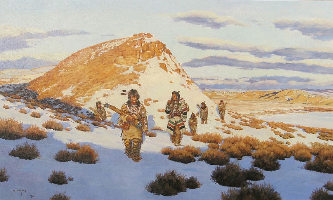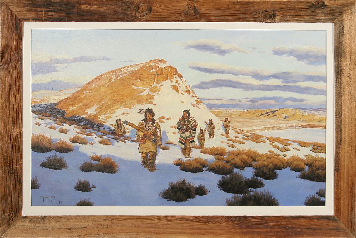 Robert Duncan (b. 1952). Past the Rock. 24" x 40" oil on canvas. Signed lower left: R DUNCAN 74. (est. $7,000-10,000). Provenance: The S. George & Helen Binson Estate, donated to the Cheyenne Frontier Days Old West Museum (Cheyenne, WY).. CONDITION REPORTS: www.auctioninsantafe.com/docs/cr2012.pdf