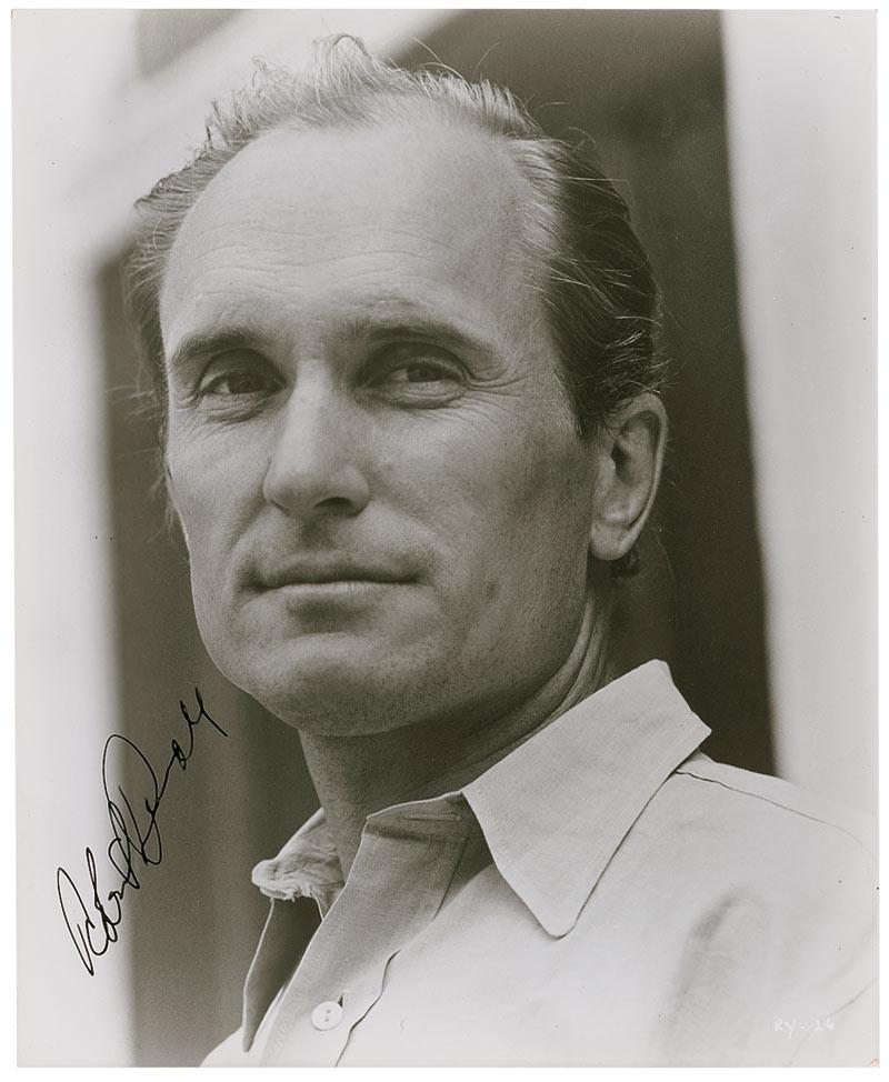 Glossy 8 x 10 close-up photo, signed in black ink “Robert Duvall.” In fine condition, with a few small creases and a light horizontal scratch crossing his face.