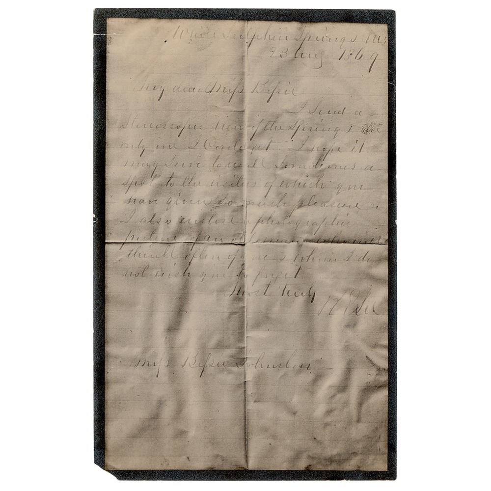 Accompanied by mimeographed photocopies of an 1867 letter from Lee sent to Bessie Johnston Gresham, sending her the offered signed photograph, as well as a CD-R disc containing a ‘Civil War CDV Study / Reference Book’ containing Gresham’s carte-de-visite photo album, which included this Lee-signed CDV.