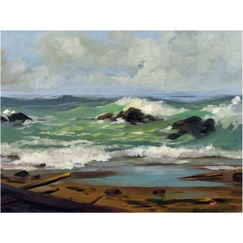 [Canadian 1919-1980] UNTITLED (CRASHING SURF) Oil on board 18 x 24 in. Signed.