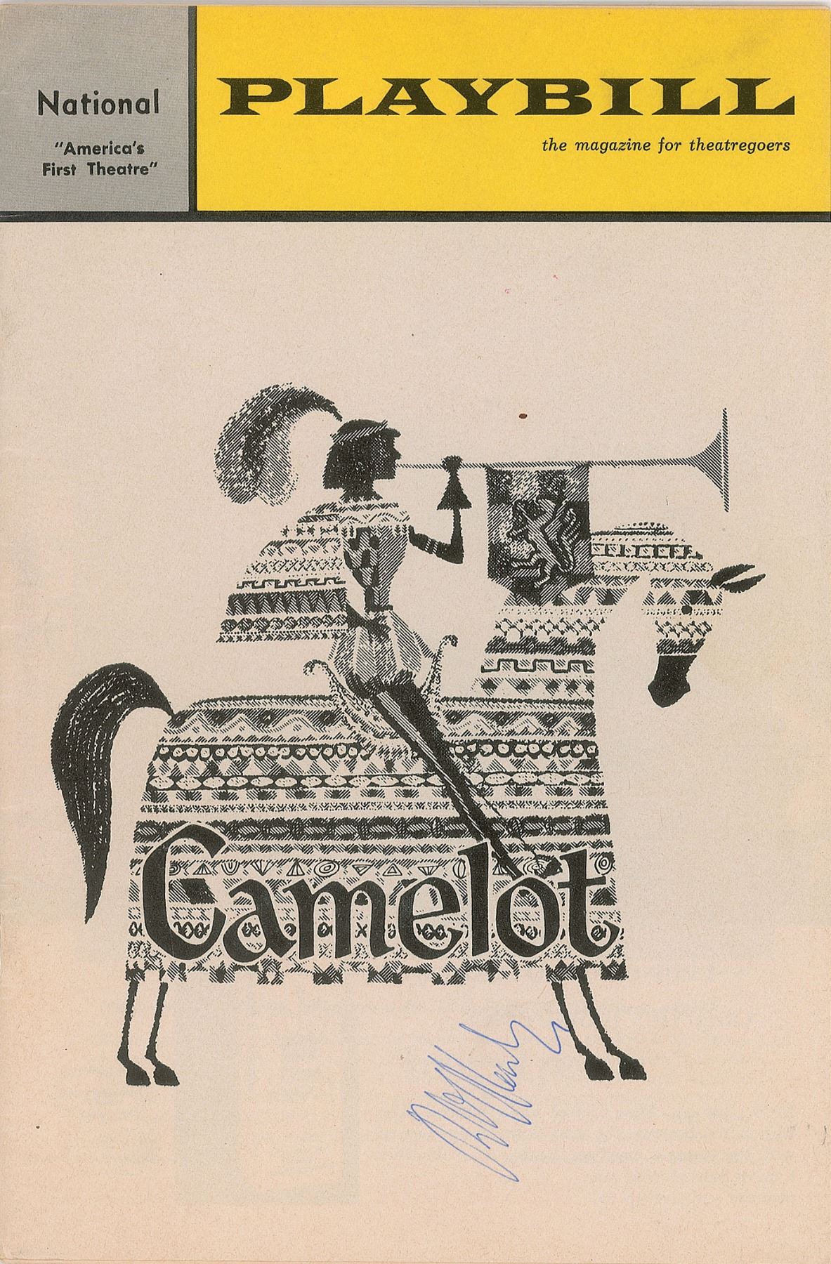 Playbill for the June 1964 production of Camelot at the National Theatre in Washington, DC, 6 x 9, 36 pages, signed on the front cover in blue ballpoint by Robert F. Kennedy. In fine condition.
