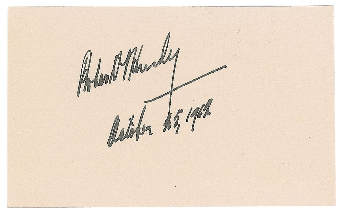 Ink signature, "Robert F. Kennedy, October 25, 1967,” on an off-white 3.5 x 2.25 card. In very fine condition.