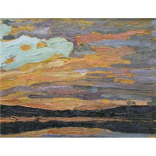 Canadian [b. 1942] SUNSET oil on panel 8 x 10 in. (20.3 x 25.4cm) signed & titled Note: After the work by Tom Thompson, commissioned for the film "The Far Shore" (1976).
