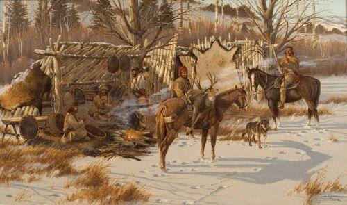 Robert F. Morgan (b. 1929). NWR. 24" x 40". Oil on Canvas. "Camp Meat". Signed LR. (est $6,000-9,000)