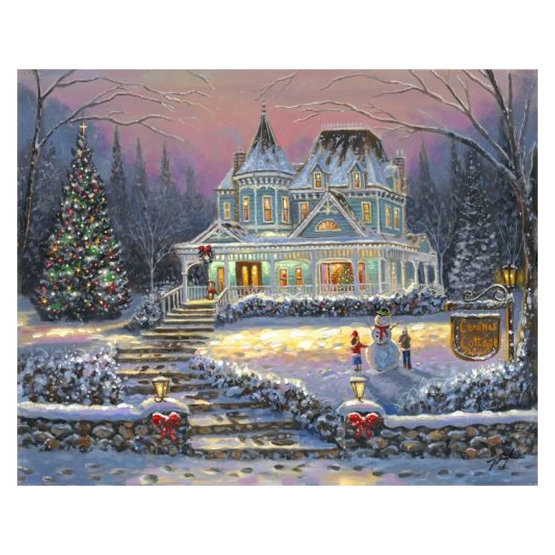 "Christmas Cottage" is an artist embellished limited edition giclee on stretched canvas by Robert Finale. The piece is hand signed, numbered AP 1/7, and comes with a certificate of authenticity. Measures approximately 18" x 24".