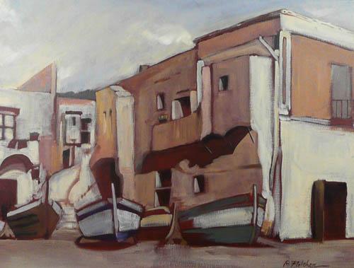 Robert Fletcher (20th Cen.) Oil on Canvas Streetscene Signed lower right 22" x 28"