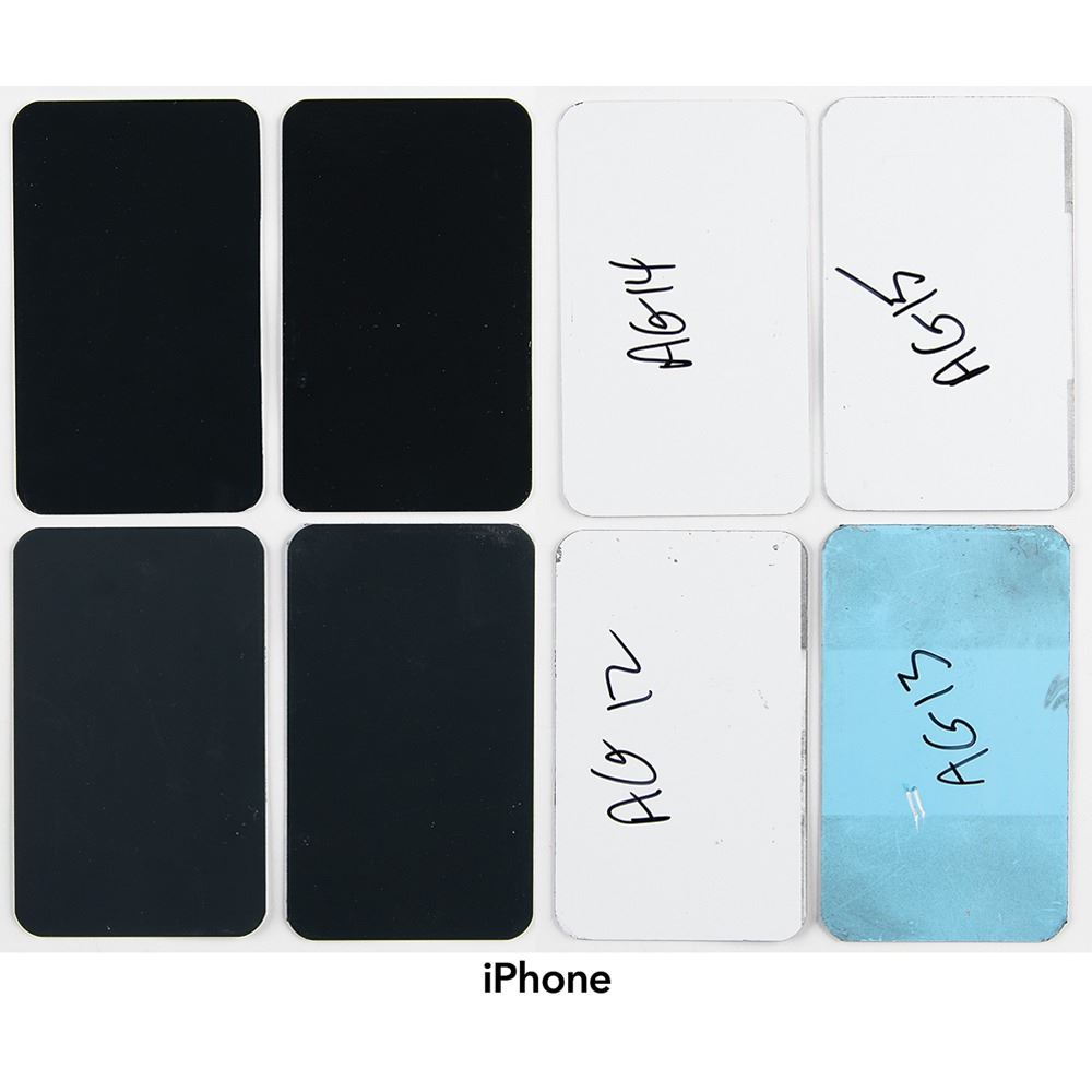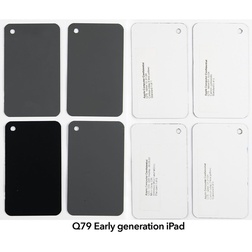 The primary contents of the archive are eight binders containing over 500 of these color swatches, mostly 3Ë x 5Ë, organized by Flores himself. Many of the color panels have Apple Computer labels on the reverse identifying the affiliated project, either by codename (e.g. "M17," "M26" [iPod Nano], "M42" [MacBook], "M68" [first-gen iPhone], "M82" [MacBook Air], "Q21B," "Q91," "Q98" [fifth-gen iPod], "Q72" [iBook G4], "Q88" [Mac Mini]) or codename and product (e.g. "Q35 ibook color project," "Q54 anodized power book," "Q22 iPod mini," "Q79 tablet," "N82/P3 iPhone"). Many of these are especially interesting as they represent pre-release, experimental samples of color possibilities for some of the most important consumer products of today's technological age: the original iPhone, colorful iPods, and MacBooks of every variety. Others lend insight into unrealized possibilities—Apple never produced a color PowerBook line, nor did they make a red iPod Mini or neon MacBook Air. Colors were under consideration for the "Q79 tablet" in 2004, some six years before the introduction of the iPad. Furthermore, these panels demonstrate the visual and tactile changes made by slight adjustments to paint formulations: the differences between "Tangerina 30%," "Tangerina 60%," "Tangerina 100%," and "Tangerina 100% hi-gloss" are quite striking. Many also indicate their Pantone, Toyo, or Munsell codes.