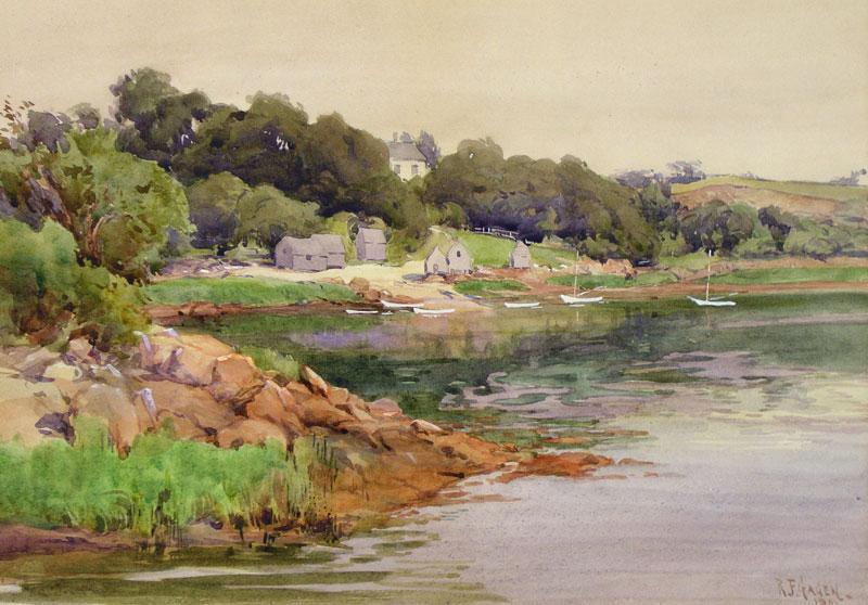 Canadian CSPWC, OSA, RCA [1847-1926] COTTAGES BY A BAY; 1901 watercolour heightened with white on paper 9.5 x 13.5 in. (24.1 x 35.6 cm) signed & dated