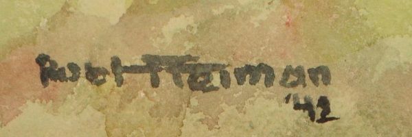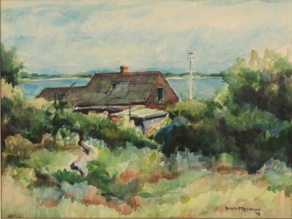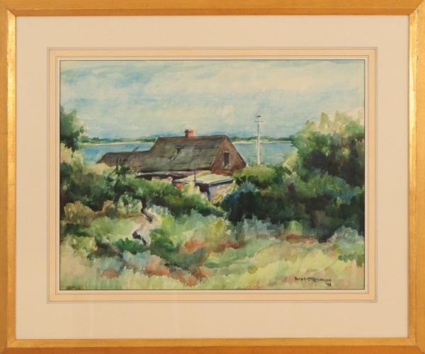 Robert Freeman. (American 20th century). 18" x 24" watercolor. "Summer Cottage" signed L. Robert Freeman 1942,