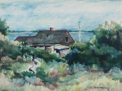 Robert Freiman (20th Cent) Watercolor "Summer Cottage" Signed lower right '42 18" x 24"