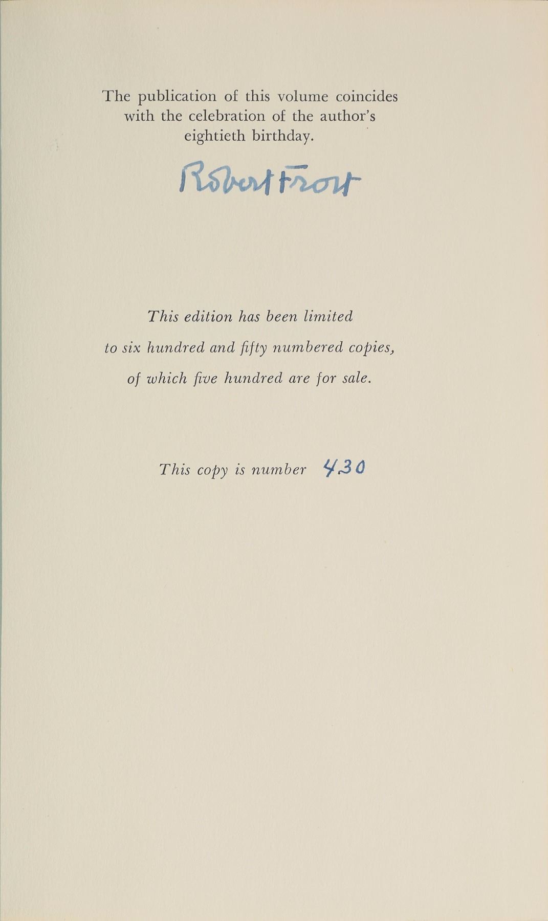 Signed book: Aforesaid. Limited edition issued for the author's 80th birthday, numbered 430/650. NY: Henry Holt and Company. Hardcover with slipcase, 6.25 x 9.5, 114 pages. Signed on the colophon in fountain pen. In fine condition, with light sunning to the spine, foxing to the gutter of the frontispiece, and sunning and wear to the slipcase.
