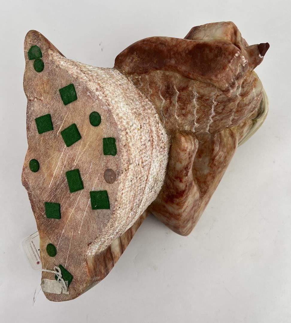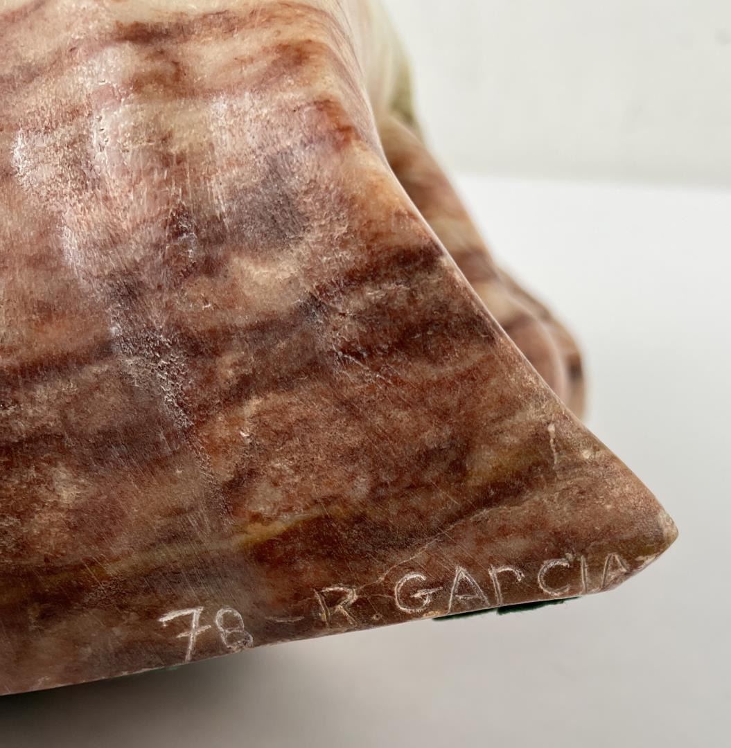 7 1/2" tall, 10" long. Robert Garcia (Born 1952) is active/lives in United States. Robert Garcia is known for Sculptor-wildlife. Robert Garcia is a sculptor who brings joy and humor to his works. "Glass Bud Trees" shows his delight in reflecting nature through gracefully bent brass trees with colorful glass bud pods. In his "Chirpy Tree," birds sit atop the tree branches in a realistic imitation of nature.Robert has many public sculptures and murals in this region. In 2002 his piece, "Good Morning," was purchased for the Schedel Arboretum Allard Auction Collection Inv: HOP 44374