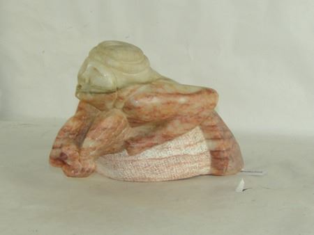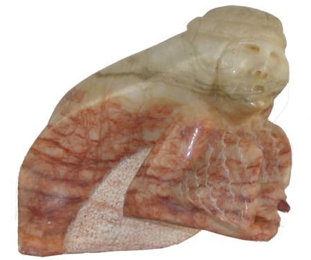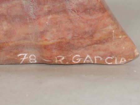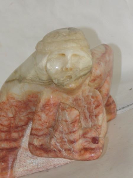 Ca. 1978, Signed original alabaster sculpture of a stylized Indian holding an eagle in its arms. Very good condition. 8" x 10-1/2" x 8-1/2"