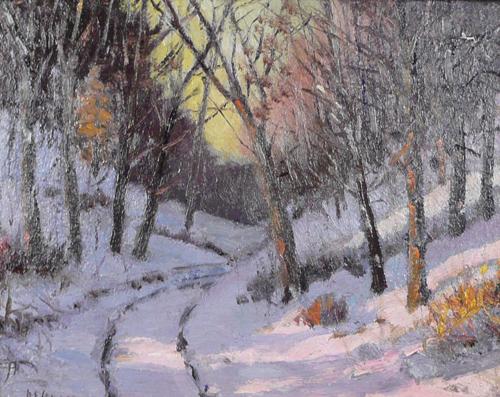 Robert Fletcher Gilder (1856 - 1940) Oil on Board Snowy landscape Signed lower left 10" x 13 1/2"