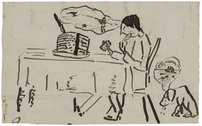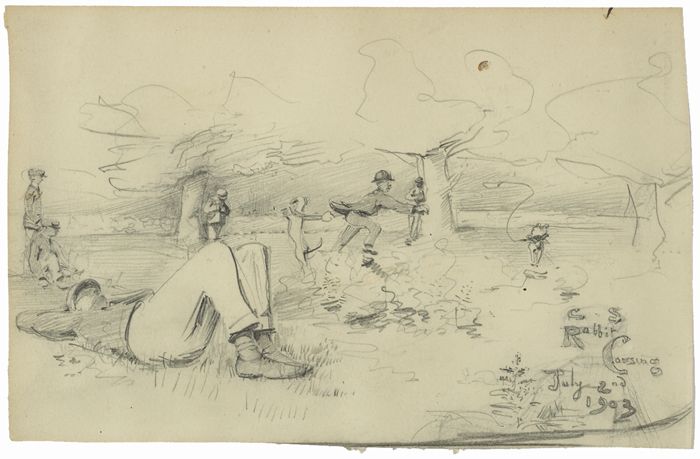 These three sketches formed part of a scrapbook belonging to artist Robert Gregory; son of Lady Gregory of Coole Park. Robert Gregory was unusually gifted both artistically and athletically. W. B. Yeats wrote several poems about him, referring to him as “our perfect man”. For further information see Colin Smythe (ed.), Robert Gregory 1881-1918: A Centenary Tribute, Gerards Cross, 1981.