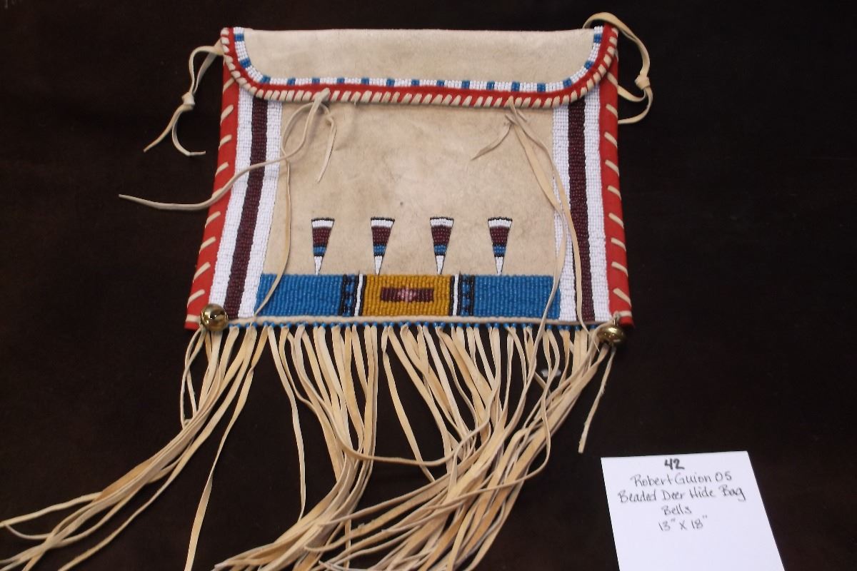 Robert Guion 05 Beaded Deer Hide Bag- Bells- 13" X 18"