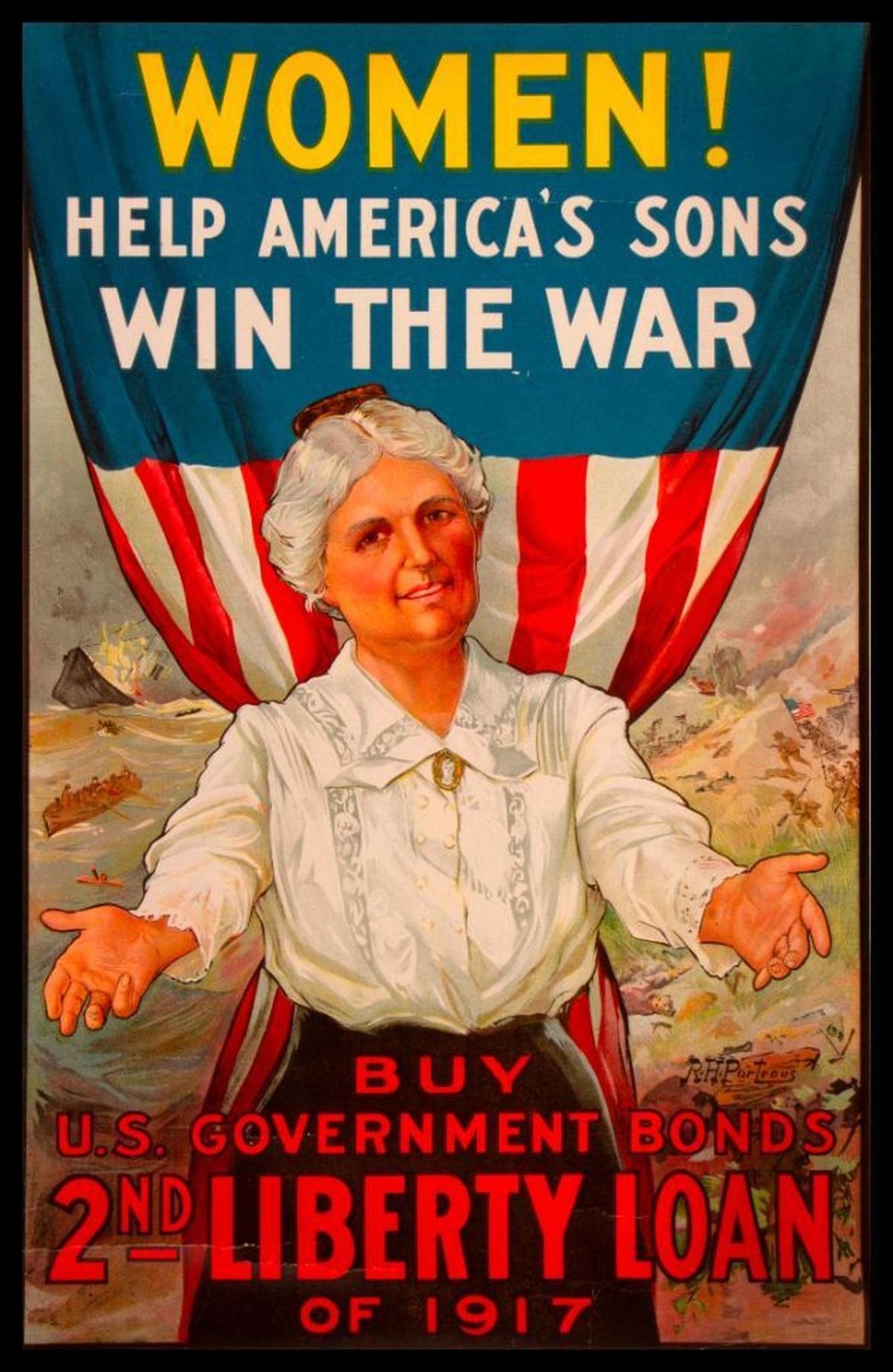 Vintage World War I Poster. "Women! Help America's Sons", 1917. Size: 30 x 20 inches. Linen backed. Condition: as per photograph.