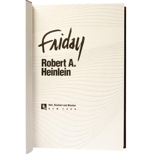 <B>Robert A. Heinlein: Signed Limited First Edition of<I> Friday.</B></I></B></I> (New York: Holt Rinehart and Winston, 1982), first edition, number 302 of 500 copies hand numbered and signed by the author on a special limitation page bound in front, 368 pages, maroon cloth with gilt titles, 8vo (6.25" x 9.25"), fine in slipcase as issued. <I>From the Ventura Collection.</B></I><BR><BR><b>Shipping:</b> Books & Catalogs (<a target="_blank" href="http://www.heritageauctions.com/common/shipping.php">view shipping information</a>)