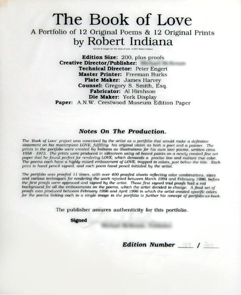 Medium: 12 Love and 12 Poems Serigraphs, individually Signed and numbered in pencil
