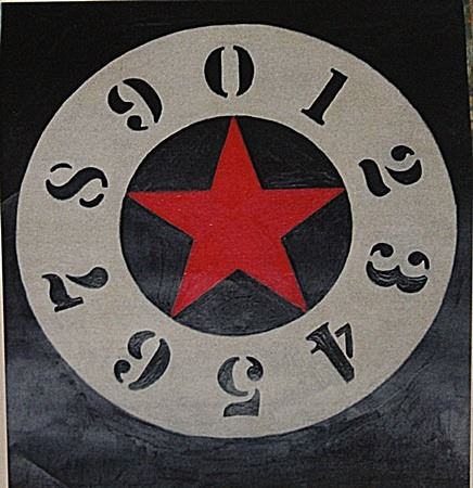 In the manner of Robert Indiana "Untitled" oil on paper circa.1970, private collection approx. 12x11in. Indiana is an American artist associated with the pop art movement. His "LOVE" print, first created for the Museum of Modern Art's Christmas card in 1965, was the basis for the widely distributed 1973 United States Postal Service "LOVE" stamp. His media include paper (silk screen) and Cor-ten steel sculpture.