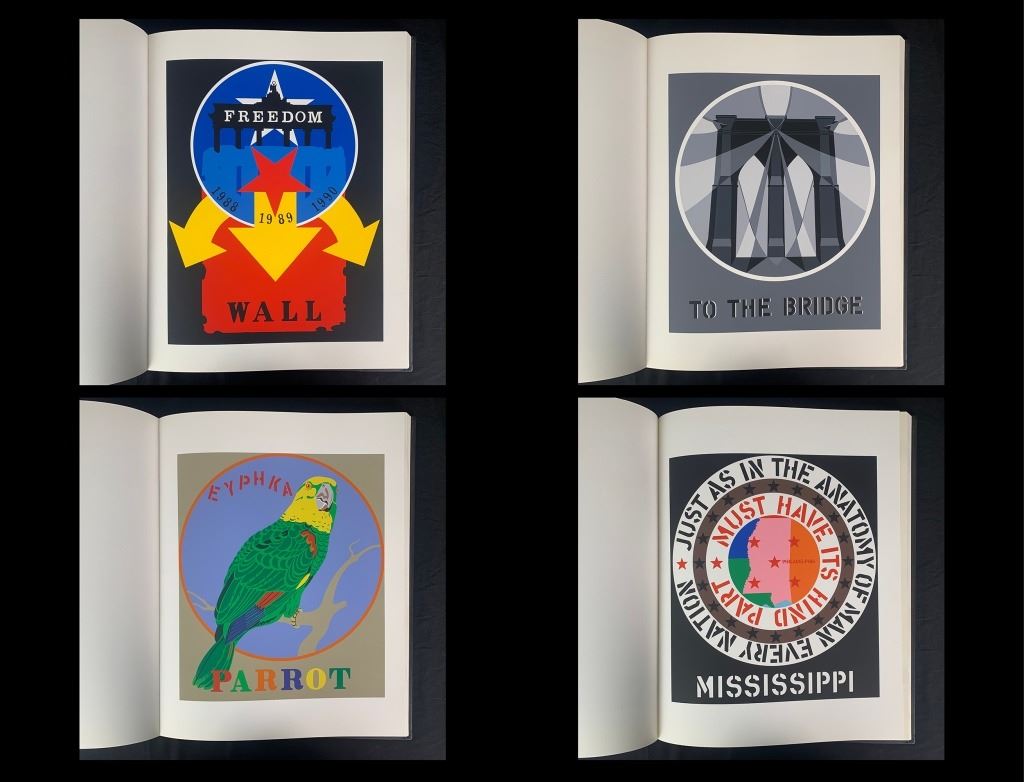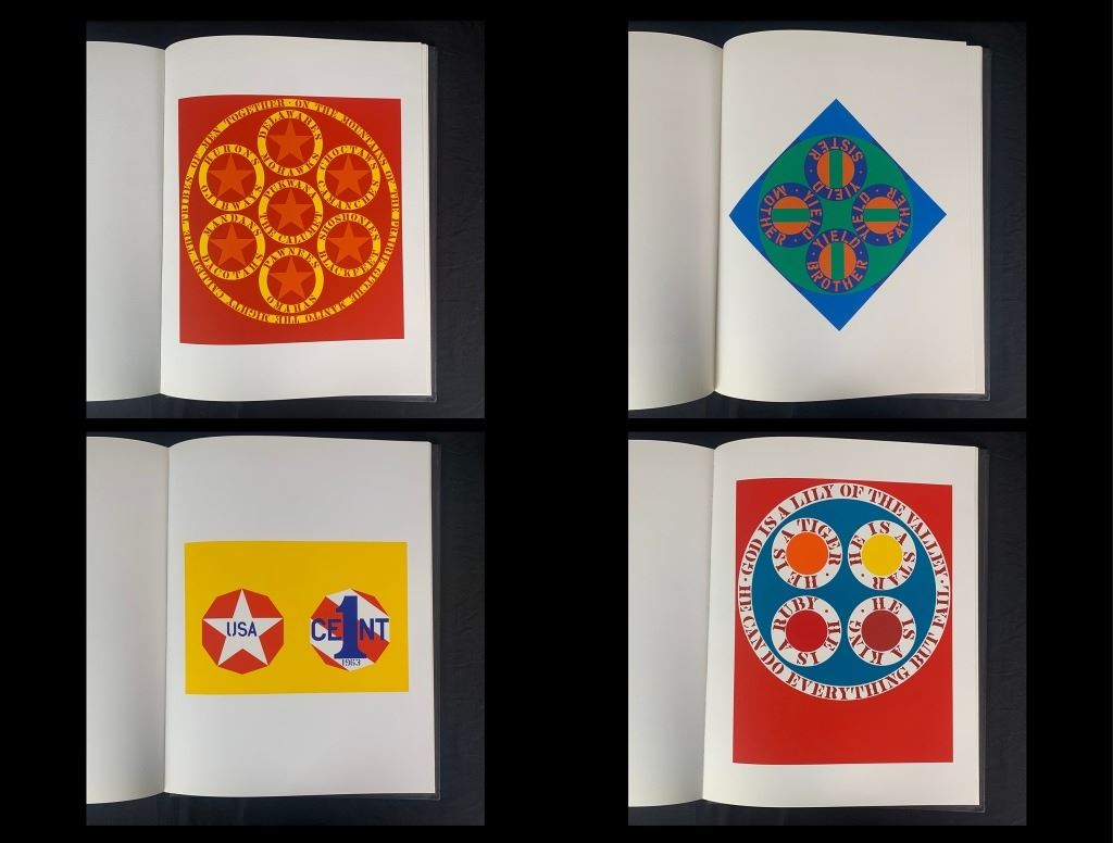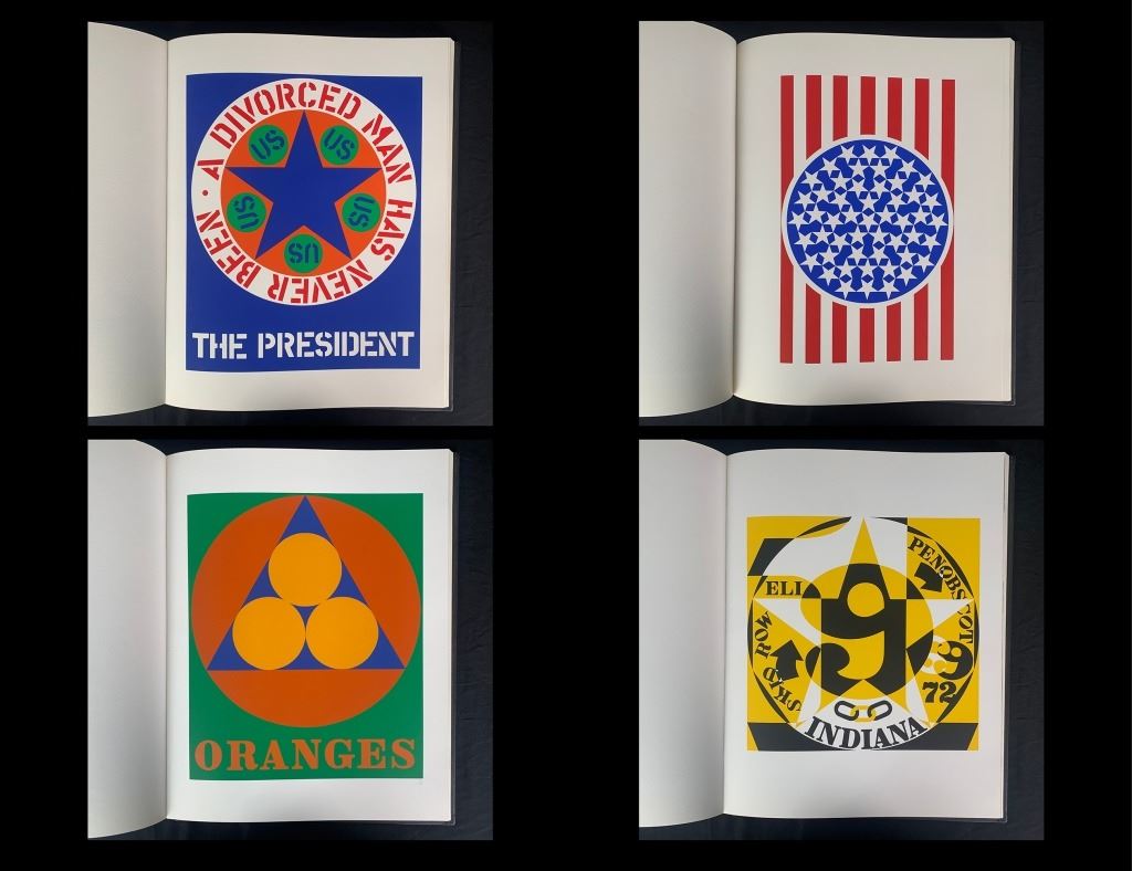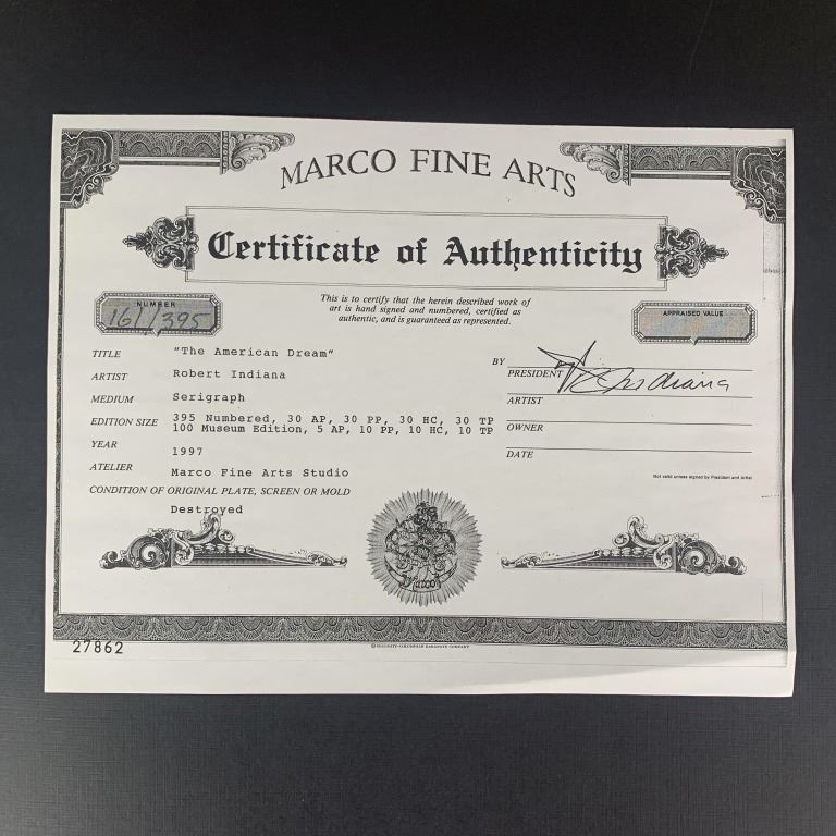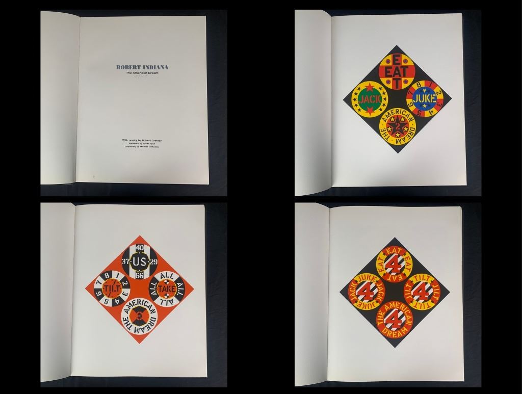 Robert Indiana's "The American Dream" limited edition book 161/395, complete set without the limited editions. Includes a certificate of authenticity from Marco Fine Arts. A quality collection, where each print is in mint condition, the book is in excellent condition with very minor wear to "Robert Indiana" on the front.