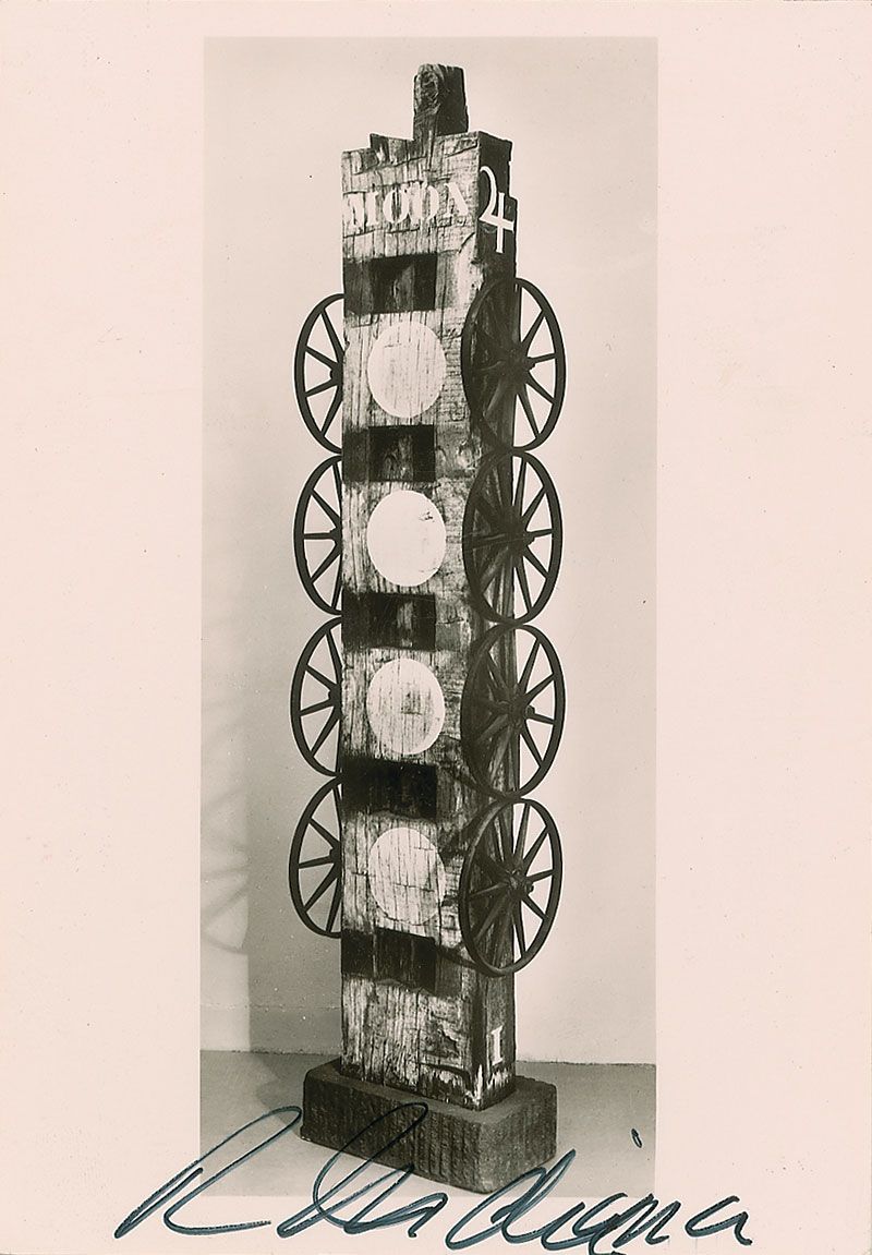 Postcard of Indiana’s sculpture entitled ‘Moon,’ 4 x 5.75, signed at the bottom in black felt tip, “R. Indiana.” In fine condition.